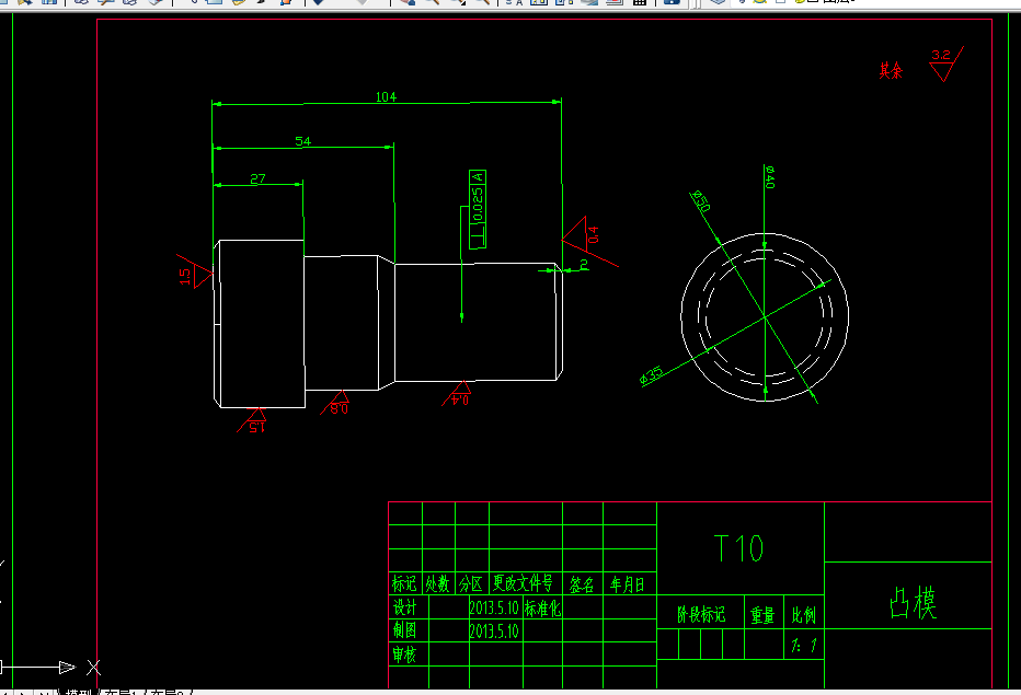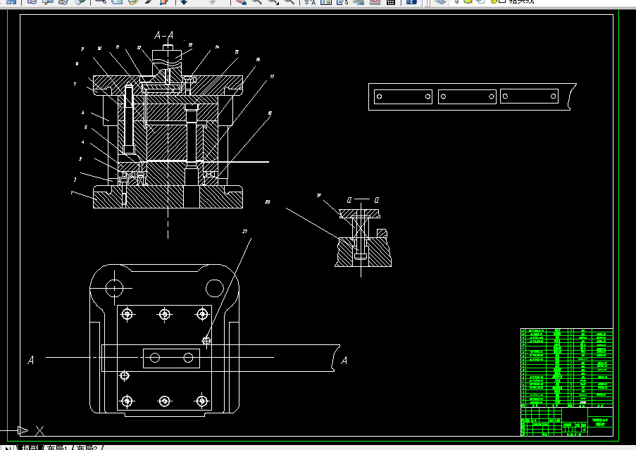在设计过程中除了设计说明书外,还包括模具的装配图,非标准零件的零件图,工件的加工工艺卡片,工艺规程卡片,非标准零件的加工工艺过程卡片。