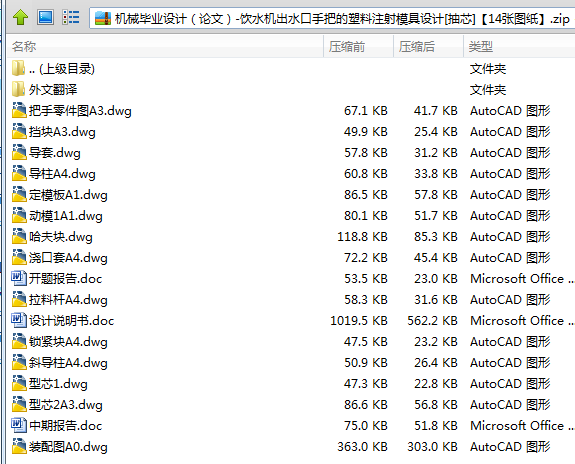 通过本设计,可以对注塑模具有一个初步的认识,注意到设计中的某些细节问题,了解模具结构及工作原理;通过对AutoCAD的学习,可以建立较简单零件的零件库,从而有效的提高工作效率。