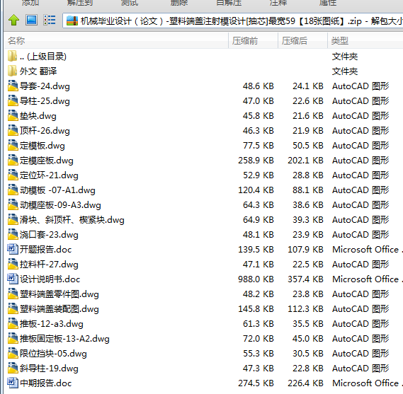 本次设计完成了塑料端盖的生产,此次设计不仅结构简单,生产效率高,而且运动可靠生产成本低。最重要的是适用于人们的生活中。