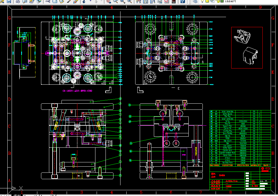 卡扣是连接的工具,考虑到其产量很大,造价的因素,故采用一模多腔模具批量生产。此塑件因为 间有通孔故需采用侧抽芯来完成分型才能生产出所需产品。此塑件结构较简单宜采用两板模就可以了,为了增加成型效果需加上热流道。