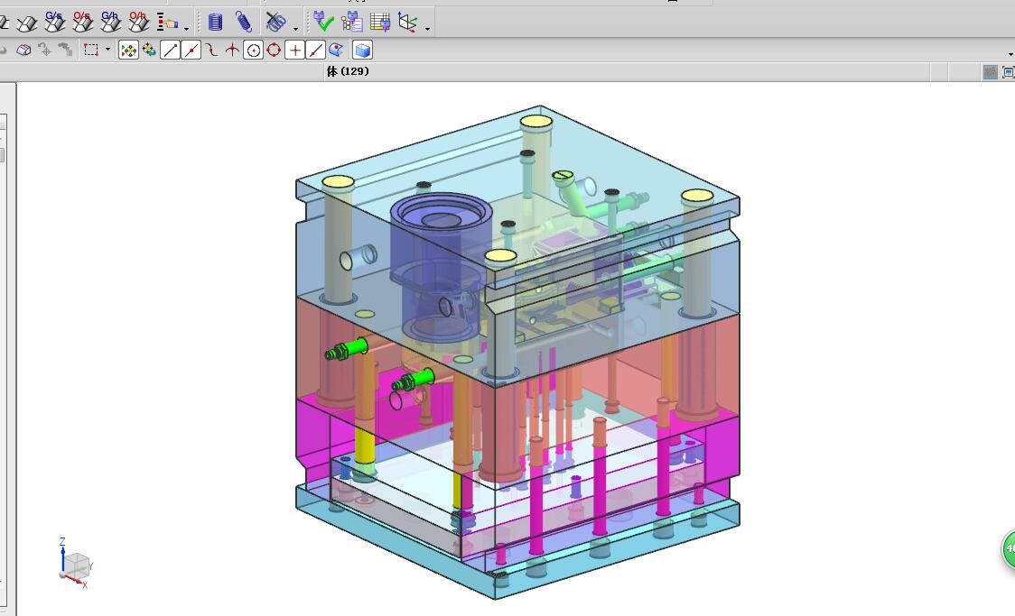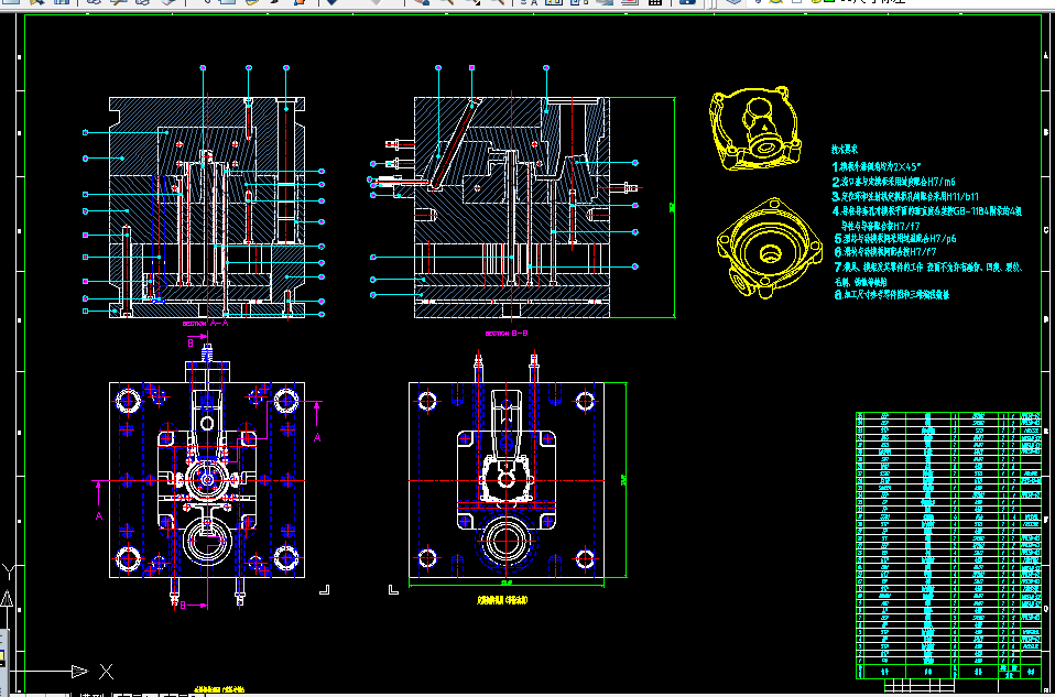 本设计主要进行了阀盖压铸模的设计。首先,对制件进行了工艺性分析,根据制件有长宽比例相差悬殊的特点,采用了侧浇道。其次,根据锁模力的计算,选择了DAM1113G型卧式压铸机;为了便于破损零部件的更换,采用镶拼式结构,对成型零部件进行了详细的设计计算;模具采用导柱、导套实现导向,采用推杆推出制件。最后,对压铸机及模具的强度进行了校核,且借助AutoCAD和UG、PRO/E三维设计软件绘制了模具的装配图和实体图。