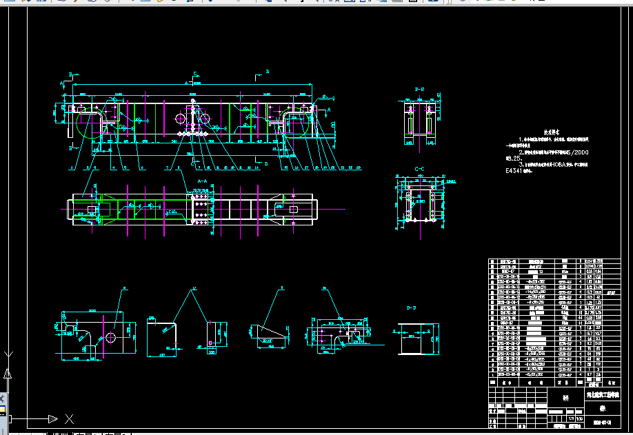 端梁部分在起重机中有着重要的作用,它是承载平移运输的关键部件。端梁部分是由车轮组合端梁架组成,端梁部分主要有上盖板,腹板和下盖板组成;端梁是由两段通过连接板和角钢用高强螺栓连接而成。在端梁的内部设有加强筋,以保证端梁架受载后的稳定性。