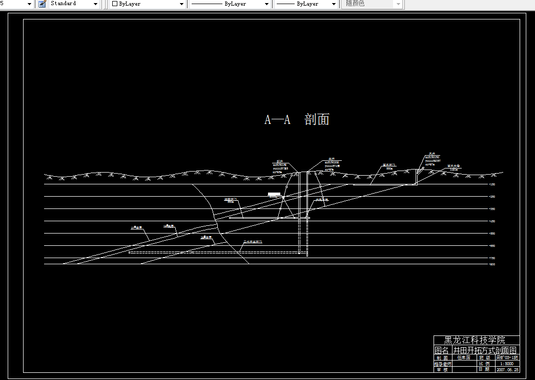 本矿井设计采用双立井方案开拓,划分两个水平,一个工作面达产。采用集中大巷布置,大巷采用10t架线式电机车牵引3t底卸式矿车运输,采煤方法为走向长壁采煤法,采煤工艺为综合机械化采煤工艺,采空区处理方法为全部垮落法。