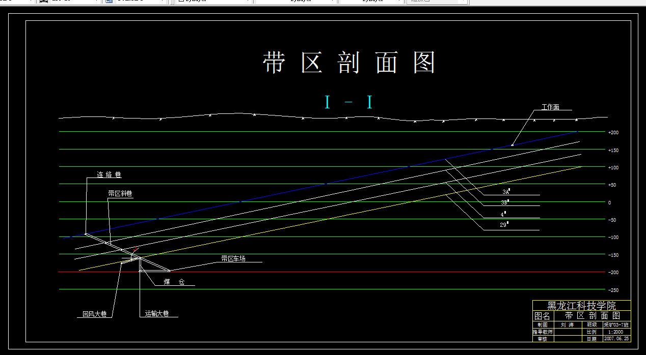 本设计矿井采用双立井开拓方式,划分两个开采水平。采用集中大巷布置,大巷采用10t架线式电机车牵引3.0t底卸式矿车运输,采煤方法为倾向长壁采煤法,采煤工艺为综合机械化开采,采空区处理方法为全部垮落法。