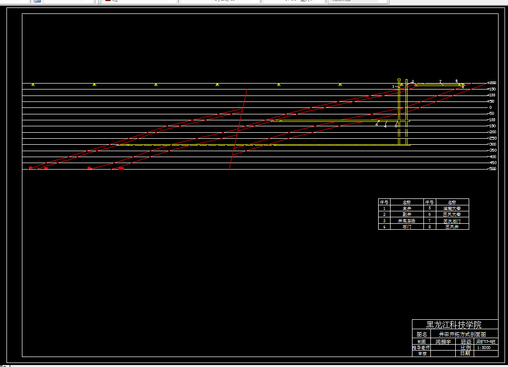 本设计矿井为鸡西矿业集团有限责任公司滴道矿1.5Mt/a新井设计,共有4层可采煤层,平均厚度6.5m。煤层工业牌号为1/3焦煤,设计井田的可采储量108.28Mt,服务年限为52a,本矿井设计采用两水平立井方案开拓,一个工作面达产。采用集中煤层联合开采,大巷采用10t架线式电机车牵引3t底卸式矿车运输,采煤方法为倾斜长壁采煤法,采煤工艺为综合机械化采煤工艺。