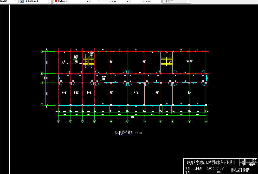 本设计主要进行了结构方案中横向框架10轴框架的抗震设计。在确定框架布局之后,先进行了层间荷载代表值的计算,接着利用顶点位移法求出自震周期,进而按底部剪力法计算水平地震荷载作用下大小,进而求出在水平荷载作用下的结构内力(弯矩、剪力、轴力)。接着计算竖向荷载(恒载及活荷载)作用下的结构内力。最后找出最不利的一组或几组内力组合。选取最安全的结果计算配筋并绘图。此外还进行了结构方案中的室内楼梯的设计。完成了平台板,梯段板,平台梁,斜梁等构件的内力和配筋计算及施工图绘制。选取部分梁、板、柱进行了构件的内力和配筋计算。