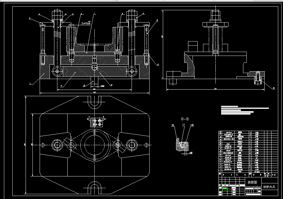 斜拨叉加工工艺规程及其铣断的夹具设计是包括零件加工的工艺设计、工序设计以及专用夹具的设计三部分。在工艺设计中要首先对零件进行分析,了解零件的工艺再设计出毛坯的结构,并选择好零件的加工基准,设计出零件的工艺路线;接着对零件各个工步的工序进行尺寸计算,关键是决定出各个工序的工艺装备及切削用量;然后进行专用夹具的设计,选择设计出夹具的各个组成部件,如定位元件、夹紧元件、引导元件、夹具体与机床的连接部件以及其它部件;计算出夹具定位时产生的定位误差,分析夹具结构的合理性与不足之处,并在以后设计中注意改进。