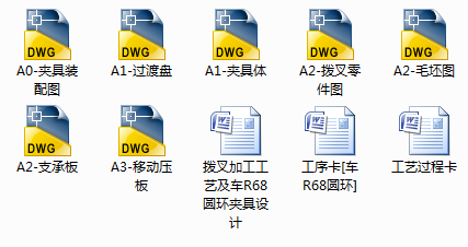 拨叉加工工艺规程及其车R68圆环的夹具设计是包括零件加工的工艺设计、工序设计以及专用夹具的设计三部分。在工艺设计中要首先对零件进行分析,了解零件的工艺再设计出毛坯的结构,并选择好零件的加工基准,设计出零件的工艺路线;接着对零件各个工步的工序进行尺寸计算,关键是决定出各个工序的工艺装备及切削用量;然后进行专用夹具的设计,选择设计出夹具的各个组成部件,如定位元件、夹紧元件、引导元件、夹具体与机床的连接部件以及其它部件;计算出夹具定位时产生的定位误差,分析夹具结构的合理性与不足之处,并在以后设计中注意改进。