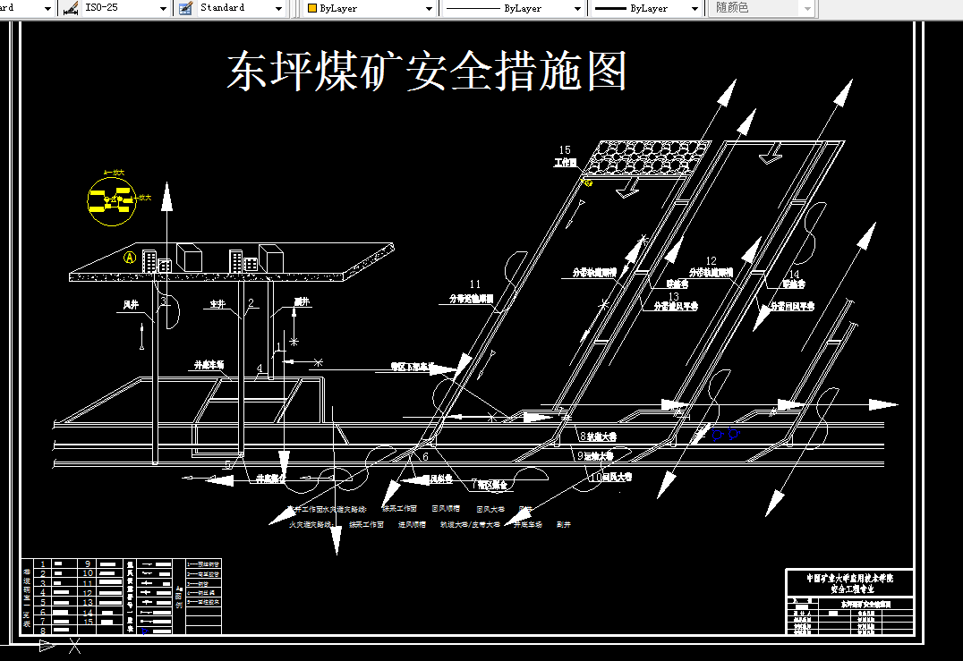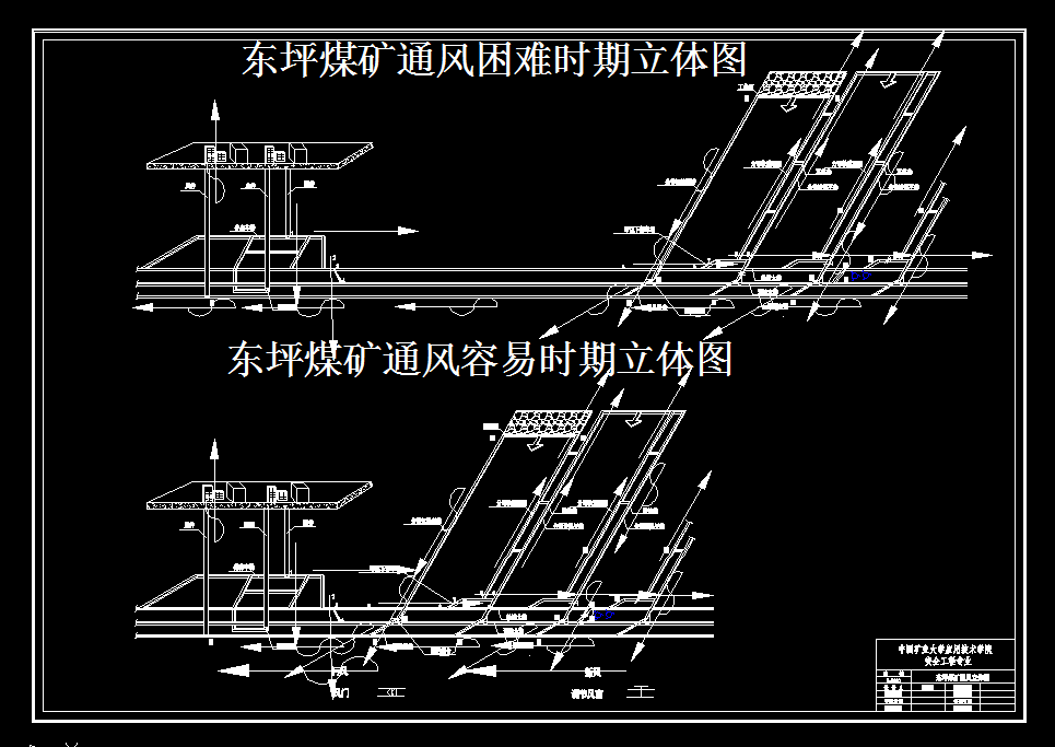 4.矿井通风设计:根据矿井的开拓开采的条件,设计矿井采用中央并列式抽出式通风。矿井的风量分配由内向外计算,工作面采用“U型通风”,掘进工作面采用局扇进行压入式通风,根据矿井通风容易和困难时期的阻力选择主扇,矿井利用反转风机反风。