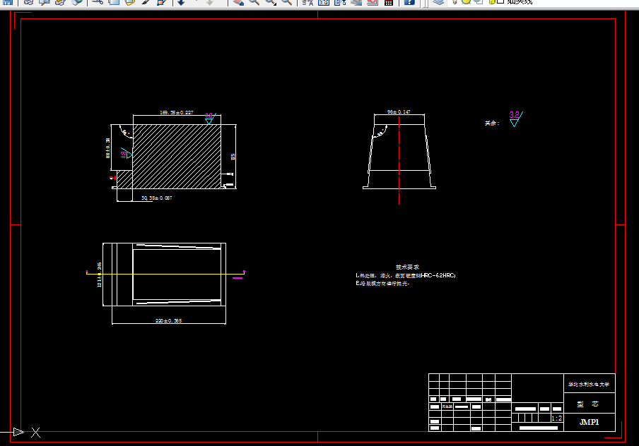 根据计算数据,用Auto-CAD绘制出一张模具装配图和部分非标准件零件图。