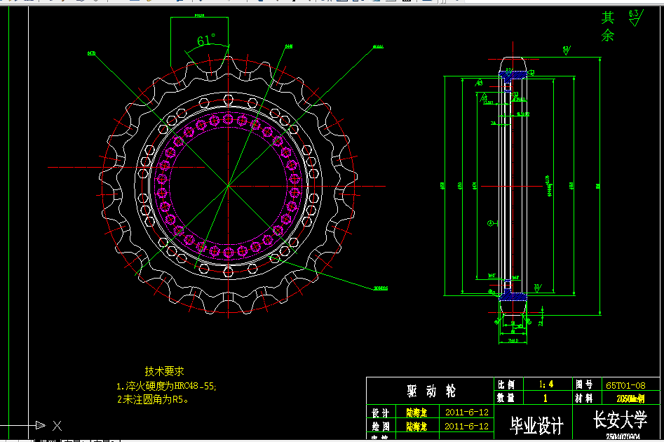 摊铺机广泛适用于公路和城市道路的建设和养护,还用于机场、港口、停车场等工程施工。本文详细说明了摊铺机的行走装置和张紧装置的设计:履带式摊铺机履带接地面积大,具有摊铺作业过程中附着牵引力性能良好,不易打滑,同时可起到更好的摊铺滤浪作用,提高摊铺平整度、平稳性,适用于公路大规模的连续摊铺;张紧装置采用张紧弹簧和张紧油缸,松弛的履带会导致它在行驶中产生振跳现象,履带的振跳将引起冲击载荷和额外的功率损耗,加快履带销和销套的磨损.因此履带必须有合适的张紧度.因此履带张紧缓冲机构就显得尤为重要,张紧装置的缓冲弹簧在履带行走机构受到冲击时,起缓冲作用。
