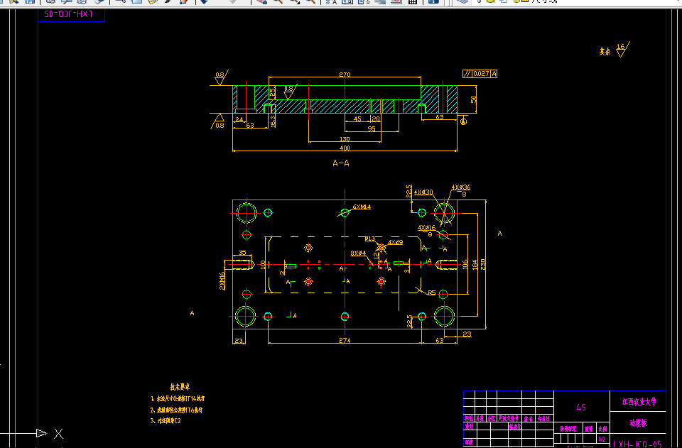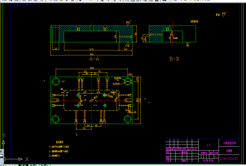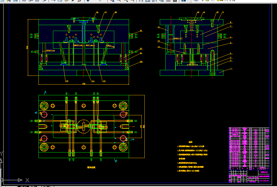 在本设计过程中,先对接触器主板零件进行工艺分析,从而进行注射机的选择,对注射机有关的参数进行校核。然后进入模具整体结构的设计,确定塑件在模具中的布局和分型面的位置,确定浇注系统,主要是对主分流道的形状及尺寸的设计,对型芯型腔结构的设计和尺寸的计算,推出机构、滑块外向侧抽芯机构、导向机构和复位机构的设计,温度调节的系统和排溢系统的设计,主要对冷却系统的计算和冷却回路的布置,最后展示模具整体的结构。通过对模具这些结构的设计,保证模具的正常使用,优化模具结构,是模具结构紧凑可靠。