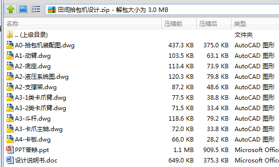 2、若题目上备注三维,则表示文件里包含三维源文件,由于三维组成零件数量较多,为保证预览截图的简洁性,本站将三维文件夹进行了打包。三维及CAD预览截图,均为本站电脑打开软件进行截图的,保证能够打开,下载原件超高清,下载后解压即可;