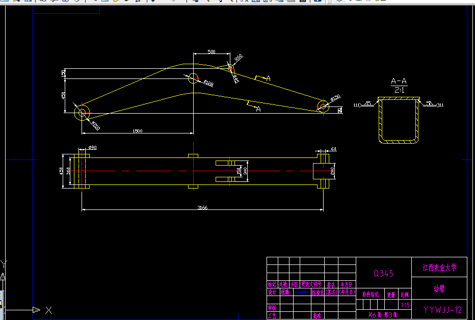 本次毕业设计,选择为履带式的液压挖掘机,为了满足要求。在转盘上表面是整个旋转,因此它可以在更大的范围内工作。由于采用液压传动与控制可以提高整体性能。随着现代挖掘机相比,开采量增加到2 ~ 3倍,质量大约是6吨,挖掘力约为30kN,排放的最大高度约为2.65m,最大挖掘深度4.2m,最大挖掘半径大约是5.728m,可从机器的操作能力有了很大的提高,不仅挖掘能力大,和机器的重量,传动平稳,工作效率很高,结构紧凑