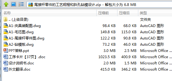 本设计的题目是尾接杆工艺规程及斜孔钻模设计。内容可分为机械加工工艺规程编制和斜孔钻模夹具设计两个部分。