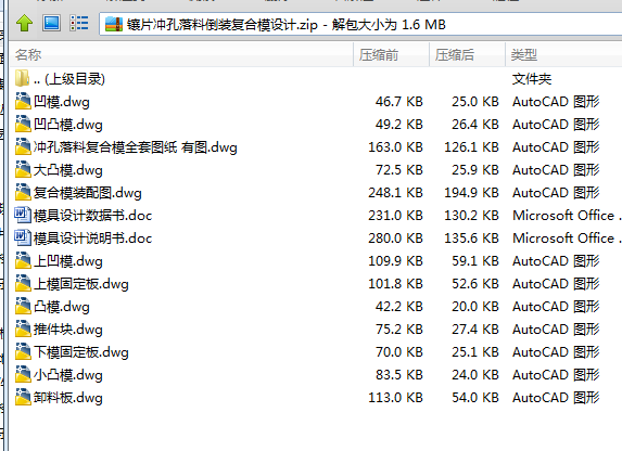 W900F-镶片冲孔落料倒装复合模设计 下载积分:50 资料编号: W900F