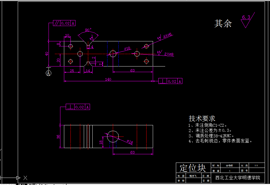 本次毕业设计的题目是叉形件加工工艺及夹具设计。叉形件是飞机液压助力器执行机构中的主要部件之一,在产品的某组件中内孔Φ10和外圆Φ9与叉形件组件中的外圆和内孔配合,起到一个连接的作用。