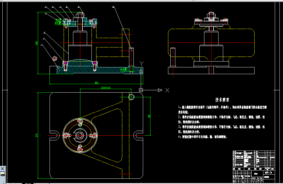 镗套座加工工艺规程及其钻4-M10孔的夹具设计是包括零件加工的工艺设计、工序设计以及专用夹具的设计三部分。在工艺设计中要首先对零件进行分析,了解零件的工艺再设计出毛坯的结构,并选择好零件的加工基准,设计出零件的工艺路线;接着对零件各个工步的工序进行尺寸计算,关键是决定出各个工序的工艺装备及切削用量;然后进行专用夹具的设计,选择设计出夹具的各个组成部件,如定位元件、夹紧元件、引导元件、夹具体与机床的连接部件以及其它部件;计算出夹具定位时产生的定位误差,分析夹具结构的合理性与不足之处,并在以后设计中注意改进。