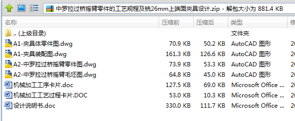 中罗拉过桥摇臂零件的工艺规程及铣高度为26mm上端面的夹具设计是包括零件加工的工艺设计、工序设计以及专用夹具的设计三部分。在工艺设计中要首先对零件进行分析,了解零件的工艺再设计出毛坯的结构,并选择好零件的加工基准,设计出零件的工艺路线;接着对零件各个工步的工序进行尺寸计算,关键是决定出各个工序的工艺装备及切削用量;然后进行专用夹具的设计,选择设计出夹具的各个组成部件,如定位元件、夹紧元件、引导元件、夹具体与机床的连接部件以及其它部件;计算出夹具定位时产生的定位误差,分析夹具结构的合理性与不足之处,并在以后设计中注意改进。