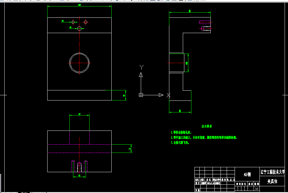 这次设计的是前盖,有零件图、毛坯图、装配图各一张,机械加工工艺过程卡片和与所设计夹具对应那道工序的工序卡片各一张。首先我们要熟悉零件,题目所给的零件是前盖。了解了前盖的作用,接下来根据零件的性质和零件图上各端面的粗糙度确定毛坯的尺寸和机械加工余量。然后我们再根据定位基准先确定精基准,后确定粗基准,最后拟定前盖的工艺路线图,制定该工件的夹紧方案,画出夹具装配图。