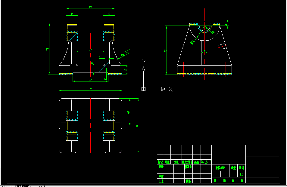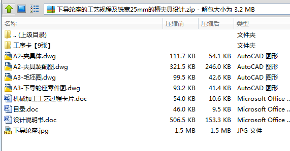 下导轮座加工工艺规程及其夹具设计是包括零件加工的工艺设计、工序设计以及专用夹具的设计三部分。在工艺设计中要首先对零件进行分析,了解零件的工艺再设计出毛坯的结构,并选择好零件的加工基准,设计出零件的工艺路线;接着对零件各个工步的工序进行尺寸计算,关键是决定出各个工序的工艺装备及切削用量;然后进行专用夹具的设计,选择设计出夹具的各个组成部件,如定位元件、夹紧元件、引导元件、夹具体与机床的连接部件以及其它部件;计算出夹具定位时产生的定位误差,分析夹具结构的合理性与不足之处,并在以后设计中注意改进。