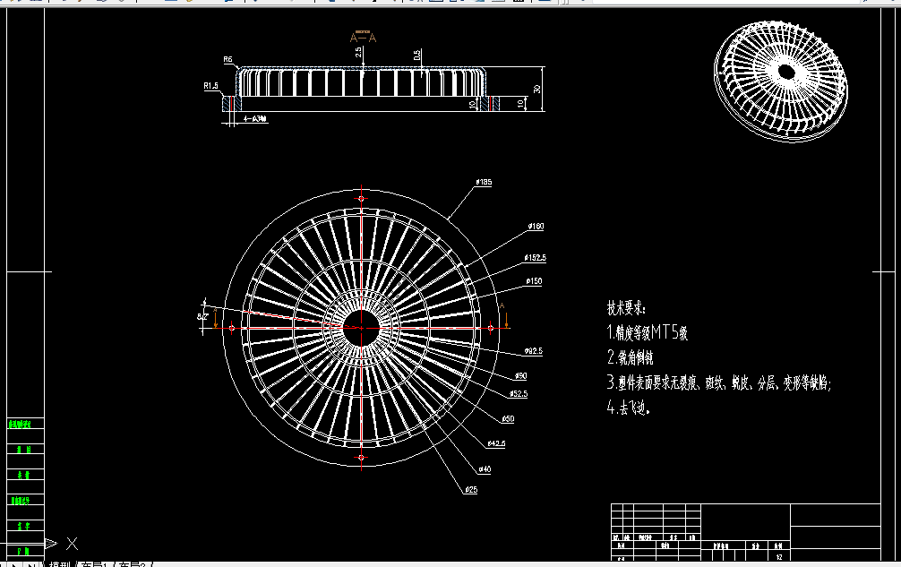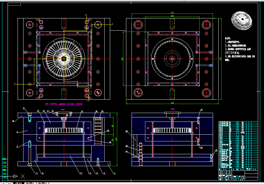 本次的毕业设计是风扇后盖的注塑模的设计,依据产品的数量和塑料的工艺性能确定了以1次分型面注塑模的方式进行设计。模具的型腔采用一模1腔布置,浇注系统采用直浇口成形,推出形式为推杆推出机构完成塑件的推出。由于塑件的工艺性能要求注塑模中有冷却系统,因此在模具设计中也进行了设计。本次的设计中参考了大量的文献,还在互联网上查找资料,设计过程比较完整。