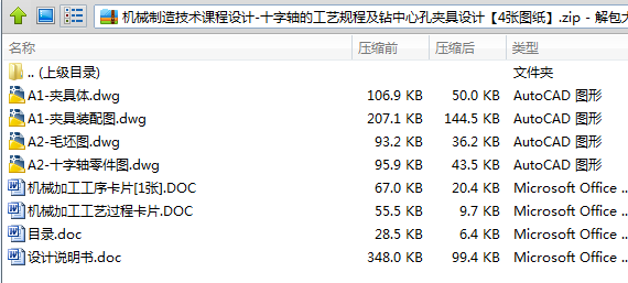 本设计是十字轴零件的工艺规程及器其具设计。从零件的结构外型分析,它的外型复杂,且不易加工,因此该零件选用是铸造件。它的主要加工面是孔、端面,在加工中由于加工精度要求比较低,所以只是采用粗加工就可以,所以将其加工划分为粗加工和半精加工阶段,以保证加工精度。在本设计中,先以一个面加工出一个基准面,然后,再以该基准面加工相应的孔。在后面的工序中,均以该孔为定位基准,加工中间轴轴承支架的两侧平面,孔。在整个加工过程中,分别采用了铣床、车床,钻床和镗床。并设计了铣侧面、钻孔和车外圆的专用夹具,并对它们的定位都采用了两V型块定位,一挡销来辅助定位。由于该零件的尺寸不大,所需的夹紧力不大。因此,夹紧方式都采用手动夹紧,它的夹紧简单,机构的设计更为方便,满足夹紧要求。