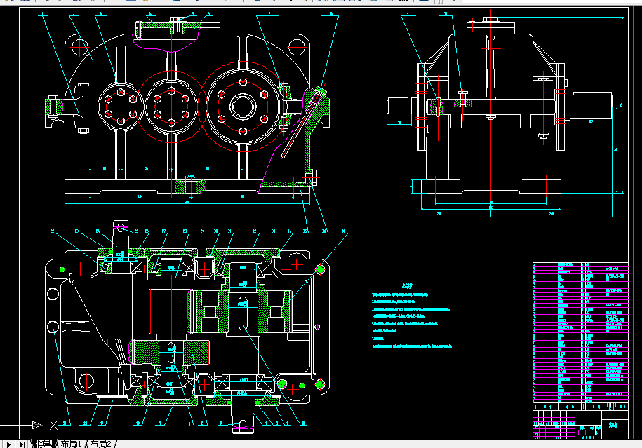 本设计主要设计减速器的结构,确定了内部各传动齿轮以及轴的各主要参数,以及改向滚筒的设计,并对其工作原理作了详细分析。