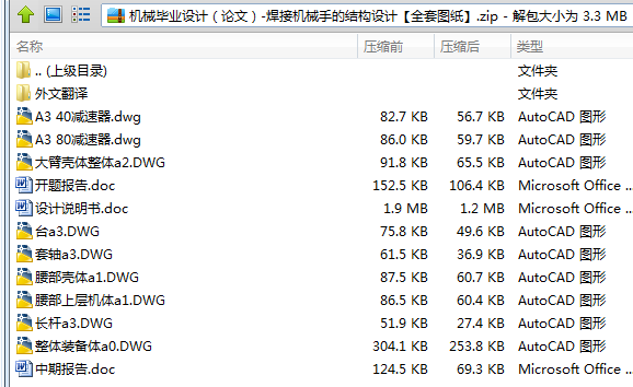 本设计为焊接机械手的结构设计,主要研究内容:腰部回转机构的设计;大、小臂和腕部回转的结构设计。