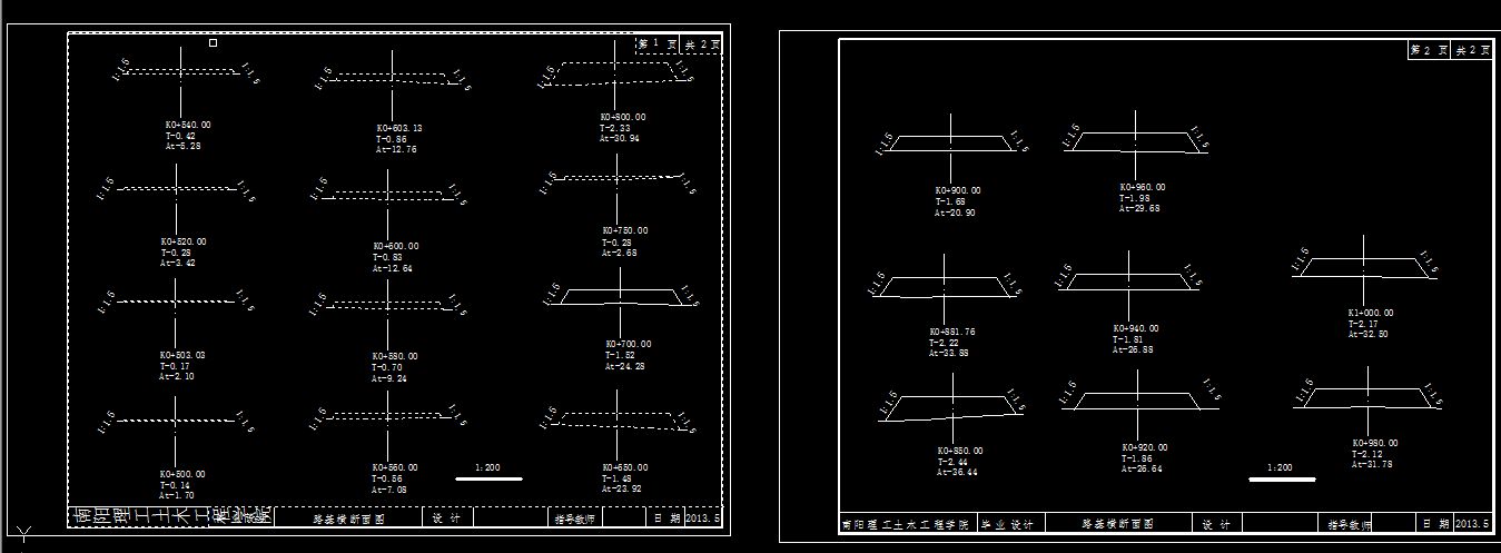 5、路基横断面设计:路幅设计(宽度、横坡);超高、加宽设计;边坡设计,路基标准横断面图;路基设计表;土石方计算表。