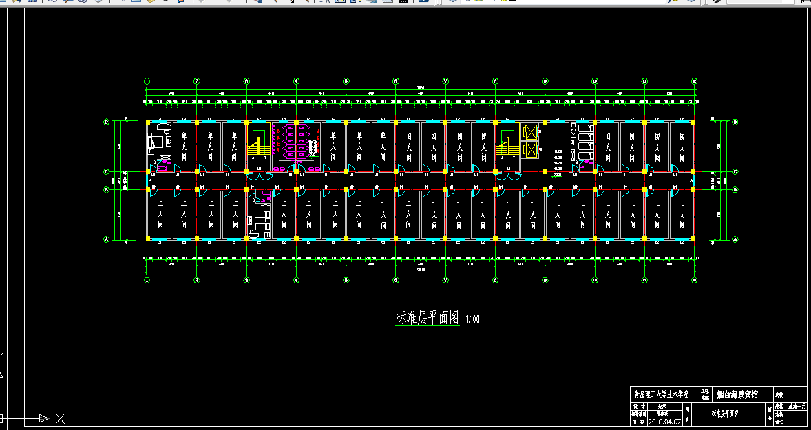 本工程烟台海景宾馆位于烟台市经济技术开发区,是以满足旅游游客为主的多功能宾馆,它南临长江路,西靠长江支路。本建筑物总长72.6m,宽35.4m,总建筑面积9212m2,占地面积1524 m2,建筑总高度22.9m,无地下室,局部有二层裙房。根据建筑设计等级的要求,设计使用年限为50年,耐火等级为二级,采光等级为三级,抗震设防烈度7度,建筑场地为二类。本设计中包括建筑设计、结构设计、施工设计三部分。