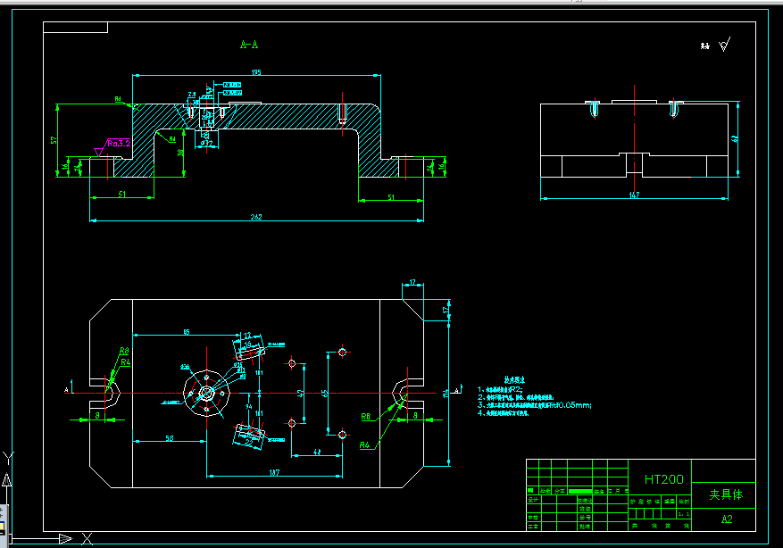 本设计是基于拨叉零件的加工工艺规程及一些工序的专用夹具设计。拨叉零件的主要加工表面是外圆及孔系。一般来说,保证平面的加工精度要比保证孔系的加工精度容易。因此,本设计遵循先面后槽的原则。并将孔与平面的加工明确划分成粗加工和精加工阶段以保证孔系加工精度。主要加工工序安排是先以支承孔系定位加工出顶平面,在后续工序中除个别工序外均用顶平面和工艺孔定位加工其他孔系与平面。夹具选用专用夹具,夹紧方式多选用手动夹紧,夹紧可靠,机构可以不必自锁。因此生产效率较高。适用于大批量、流水线上加工。能够满足设计要求。