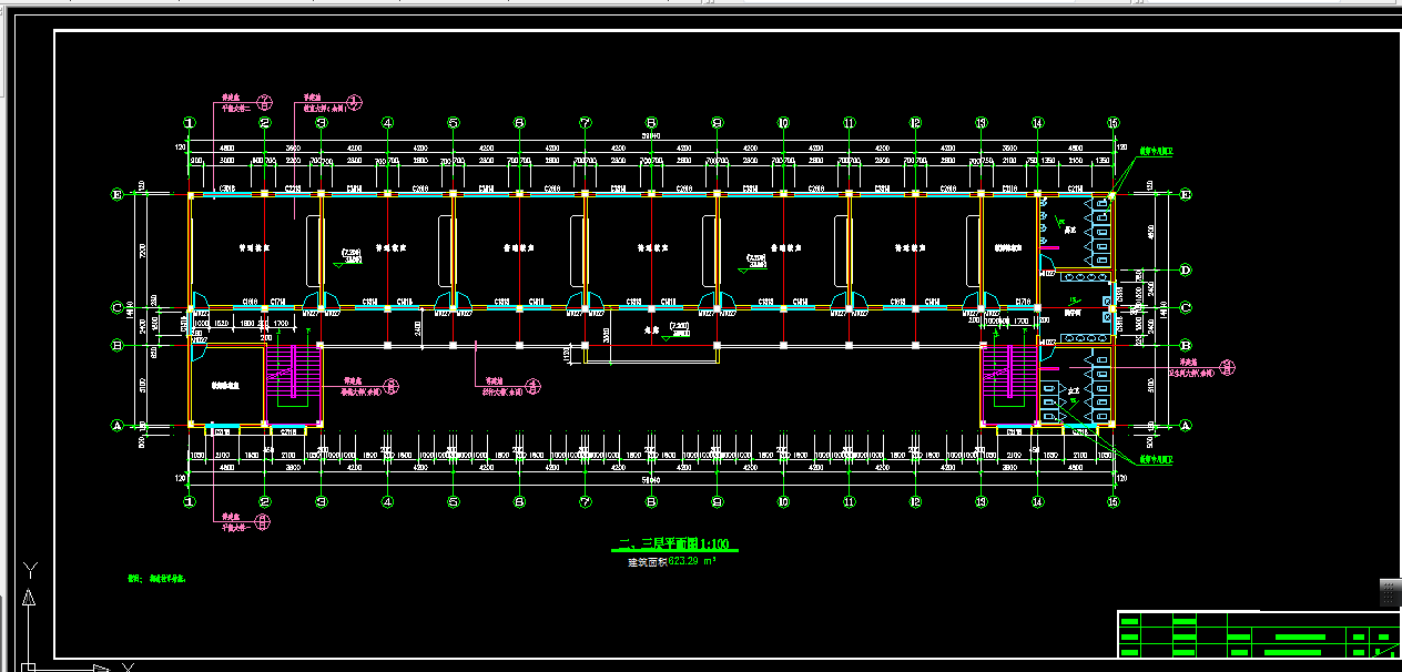 本设计中选取一榀主框架以及楼面板进行截面设计及配筋计算。首先根据框架布局确定各构件尺寸,进行恒载、活载的计算;再对框架的侧移刚度进行计算;然后采用二次弯矩分配法法进行竖向荷载作用下的结构内力计算,水平荷载采用D值法进行计算;之后进行内力组合分析,找出最不利的一组内力,进行构件计算。楼板采用弹性理论设计,并进行柱下独立基础的配筋设计。除此之外,还进行了楼梯的设计计算。最后,根据计算结果,按照相应的构造要求,绘制结构施工图,并写出相应的设计说明。
