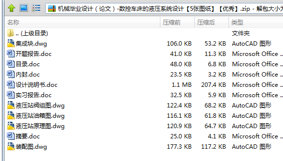 在本次的毕业设计中,我设计了数控车床液压系统。在设计的过程中,我通过查阅资料,应用了液压传动的一般原理及系统的设计原理并且应用了液压系统执行元件的选择,阀类元件的选型,集成块设计,系统布局,密封及液压油的选择等知识。最后我设计的这个液压站完成了系统的设计要求,该液压站在满足原有要求的情况下实现重量轻、体积小、成本低、效率高、结构简单、使用维护方便的要求。