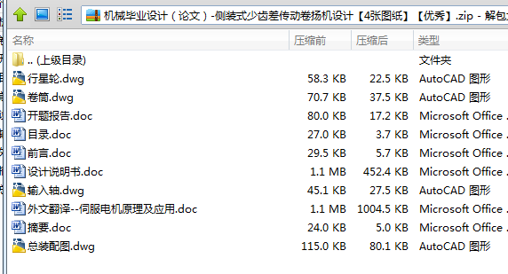 本文主要对少齿差行星齿轮传动的设计计算进行了说明。其中包括工作原理、参数选择、几何计算等。并根据结构尺寸设计零件、选择标准件,然后再进行强度或者寿命校核计算。
