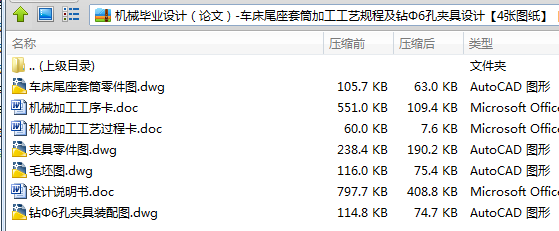本次毕业设计针对车床尾座套筒工艺规程进行设计,涉及套筒的选材、确定毛坯和机械加工余量及工序尺寸与公差、拟定工艺路线、选择工艺设备;并进行切削用量和时间定额的计算,填写机械加工工艺过程卡和机械加工工序卡片。为了保证加工质量,提高生产效率,对关键工序进行夹具设计。本文对夹具的工作原理、作用、分类和组成做了简单概述;着重分析了工序特点和要求,根据结果确定定位方案,设计定位元件、夹紧机构、对刀元件和夹具体。因此,保证了加工精度和设计质量。