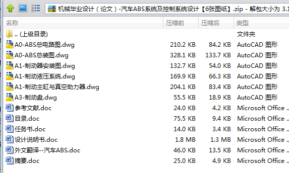 本文通过学习比较根据所学只是设计了ABS控制系统。从理论上实现了ABS的控制功能,完成了设计要求。在设计过程中对汽车制动理论和制动装置有了较为深入的了解,扩大了自己的知识面,自己解决问题的能力也得到了提高。