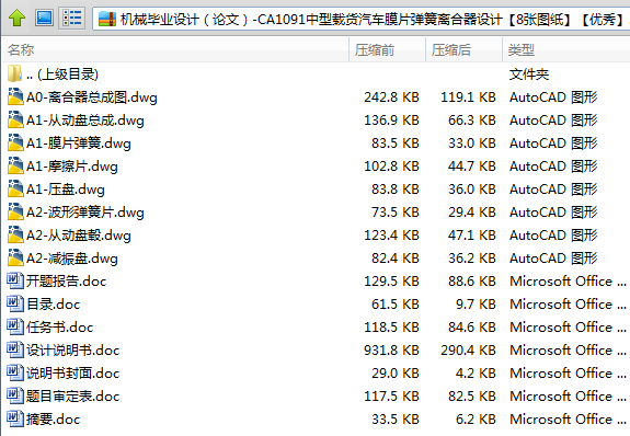 本设计得到了以粉末冶金材料作为离合器摩擦片摩擦材料的单片推式膜片弹簧离合器,满足了较高性能的标准,取代了对环境有污染的石棉基摩擦材料。