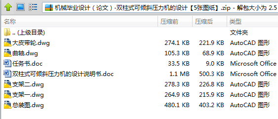 本次设计题目是双柱式倾斜压力机。倾斜式压力机由支承着床身和压头的底座支架,动力电源,压头,垂直于床身并作直线运动的机构组成。倾斜式压力机的优点是有利于废料的排出。在设计过程中,通过对冲压功率的分析,确定了飞轮和电动机功率。并且通过计算确定了各级传动比和基本尺寸。通过计算确定了系统的最大功率,对带轮和齿轮机构进行了外形尺寸和参数的计算。同时也对曲柄滑块机构进行结构设计,根据计算解决了曲轴和后轴的尺寸。