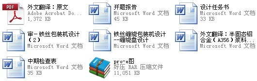 铁丝缠绕包装机的设计主要包括铁丝包装机缠绕盘机构的设计,滚筒机构的结构设计,及安装上述两部分机构的机架部分的设计,以及对这些机构中主要受力元件进行受力分析。本设计主要对铁丝包装机的缠绕盘机构部分进行设计,包括带动缠绕盘转动的传动方案的设计和在传动方案中包含的主要零部件的选择、设计及校核及电动机的选择。另外,还对主要的轴,轴承,齿轮,带轮,螺钉等零件运用Pro-e完成其三维图的绘制,并对其进行装配,最后完成对铁丝缠绕包装机的设计。最终设计出成本较低,可靠性强,使用寿命长,节省劳动力,节省时间的自动铁丝缠绕包装机。