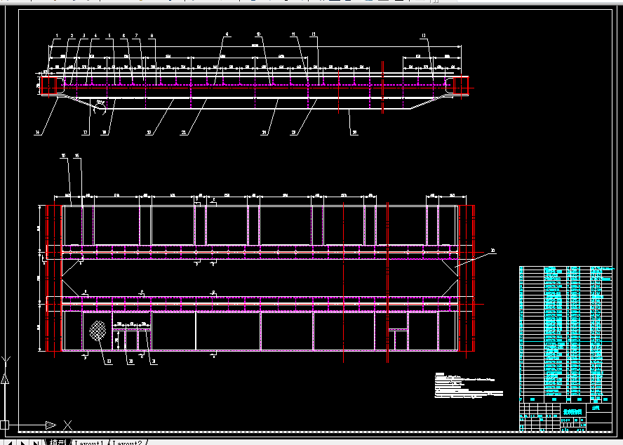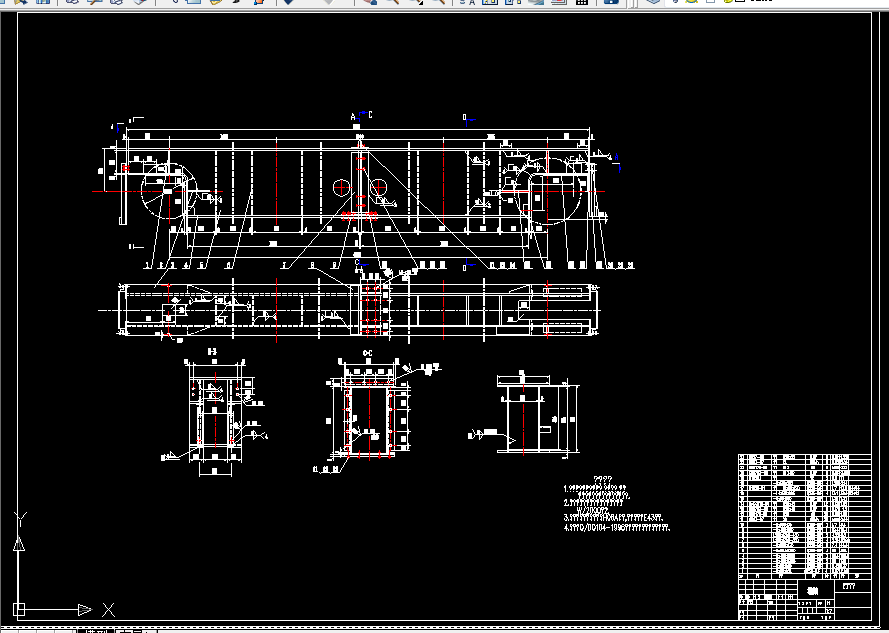 第三部分为桥架结构的设计,该部分包括桥式起重机主要尺寸如大车轮距、主梁高度、端梁高度、加劲板的布置尺寸等和计算载荷,箱型结构主梁,主要焊缝的验算。