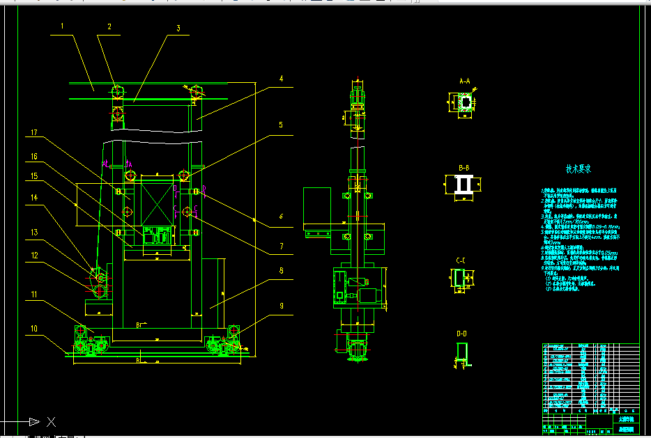 本文详细论述了在现代大多数企业中普遍使用的双立柱堆垛机的设计方案,文章的重点放在其两个部件:升降机构、货叉伸缩机构的设计上,并对安全机构和控制部分进行简单的选取和计算其中包含电机,减速器的选取,齿轮,齿条的计算,卷筒的计算,轴的校核,电器原理图的配置等。首先,提出各个机构的总体设计方案;其次,对各个机构的受力情况进行了分析并计算,然后估算初取值,再进行校核,最后确定各个实际值。