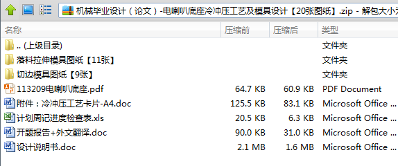 2、若题目上备注三维,则表示文件里包含三维源文件,由于三维组成零件数量较多,为保证预览截图的简洁性,本站将三维文件夹进行了打包。三维及CAD预览截图,均为本站电脑打开软件进行截图的,保证能够打开,下载原件超高清,下载后解压即可;