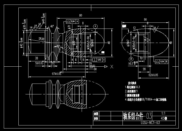 在本设计说明书中,我通过对零件的图形分析,零件的结构工艺性,技术要求进行仔细分析了,所设计的零件结构应便于成型,并且成本低,效率高,它的涉及面广,因此这一环节是技术的关键,以便在拟定工艺规程时采用适当的措施。材料分析,选好了加工毛坯,了解常用的毛坯种类:锻件.型材.焊接件.冷压件等,还有毛坯是根据零件要求的形状,工艺尺寸等方面而制成的进一步加工使用的生产对象。在制订零件的工艺规程时,正确的选择工件的基准有着很重要的意义,应划分阶段一般分粗加工.半精加工和精加工三个阶段。选择的机床型号是CA6140普通车床,CJ6032A教学型数控车床。另外还对加工的工序.工艺进行分析,从而手工将加工零件的全部工艺过程、工艺参数、位移数据等以规定的代码、程序格式写出,编制出了适合所选车床的程序。