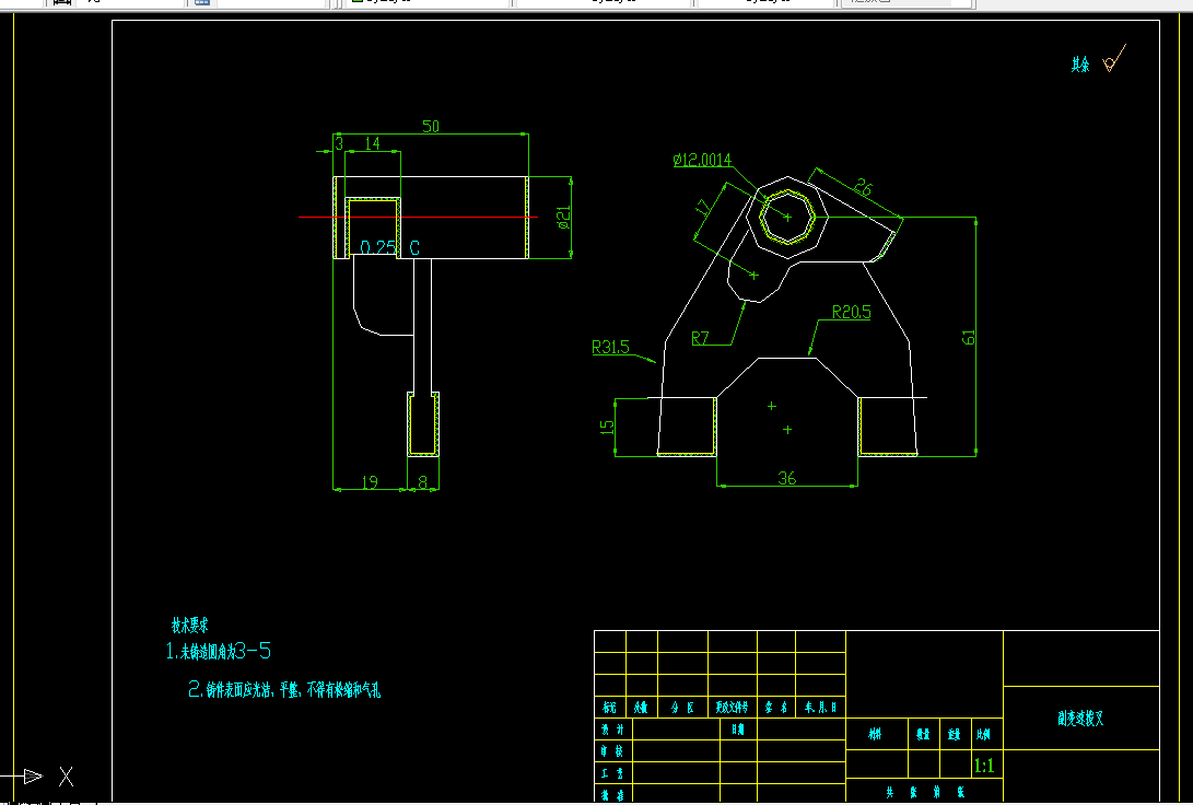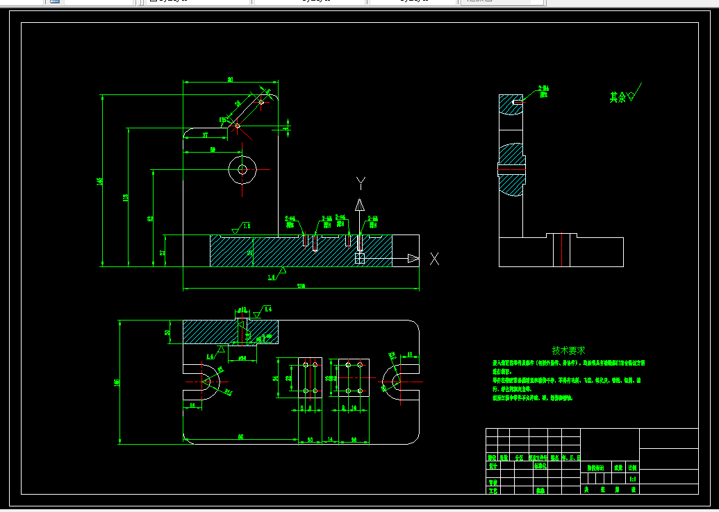 副变速拨叉加工工艺规程及夹具设计是包括零件加工的工艺设计、工序设计以及专用夹具的设计三部分。在工艺设计中要首先对零件进行分析,了解零件的工艺再设计出毛坯的结构,并选择好零件的加工基准,设计出零件的工艺路线;接着对零件各个工步的工序进行尺寸计算,关键是决定出各个工序的工艺装备及切削用量;然后进行专用夹具的设计,选择设计出夹具的各个组成部件,如定位元件、夹紧元件、引导元件、夹具体与机床的连接部件以及其它部件;计算出夹具定位时产生的定位误差,分析夹具结构的合理性与不足之处,并在以后设计中注意改进。