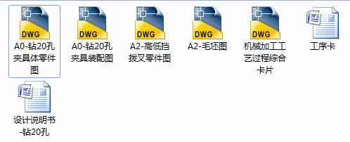 此次设计是对高低档的拨叉零件的加工工艺和夹具设计,其零件为铸件,具有体积小,零件复杂的特点,由于面比孔易加工,在制定工艺规程时,就先加工面,再以面为基准来加工其它,其中各工序夹具都采用专用夹具,特别的对于加工大头孔、槽和钻小头孔斜面小孔的工序中,选一面两销的定位方式,并以操作简单的手动夹紧方式夹紧,其机构设计简单,方便且能满足要求。