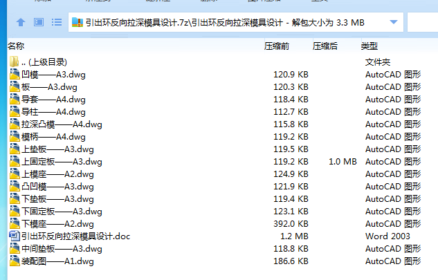 由引出环零件图知,其可分为两套模具来完成,一套为落料拉深模,一套为反向拉深模。