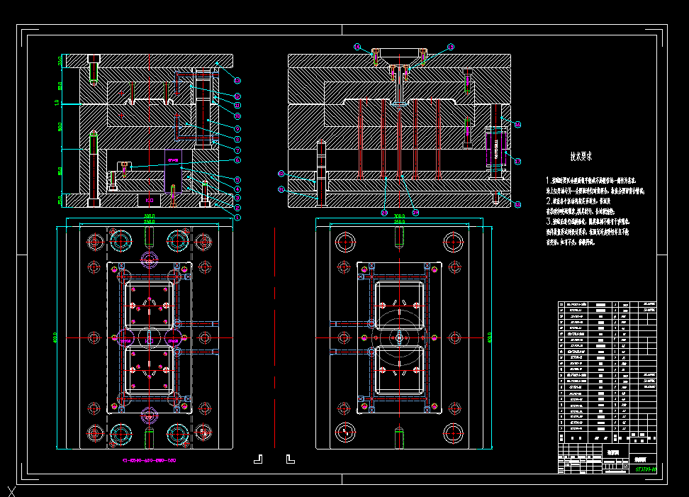 本文论述的插座上壳注塑模具采用两板式结构,即浇注系统凝料和制件在不同的分型面脱出,采用一模两腔的型腔布置,最后利用推杆将制件推出。