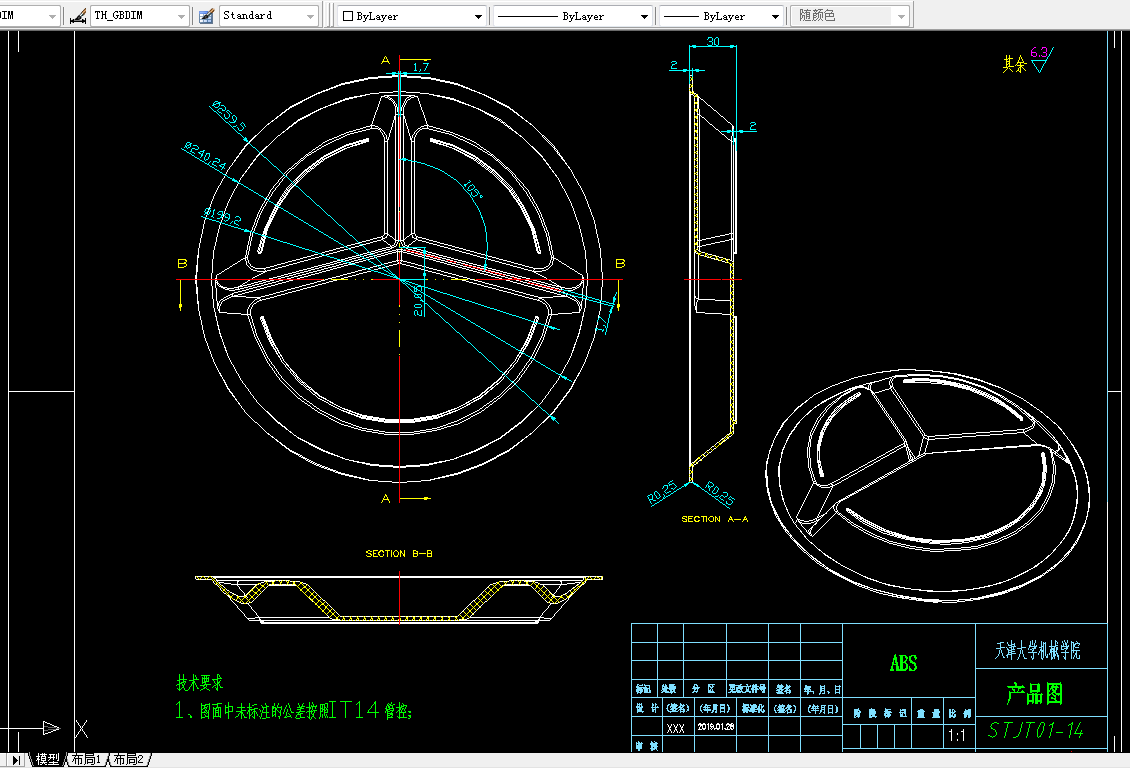 关键词: 单型腔(single caviy) 三格盘子模 CAD(制图)