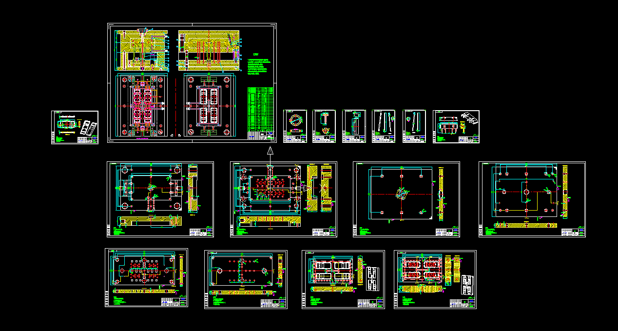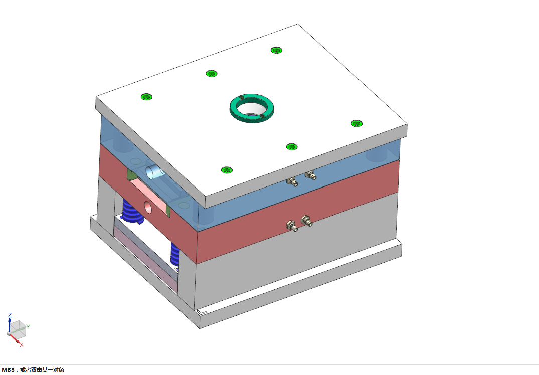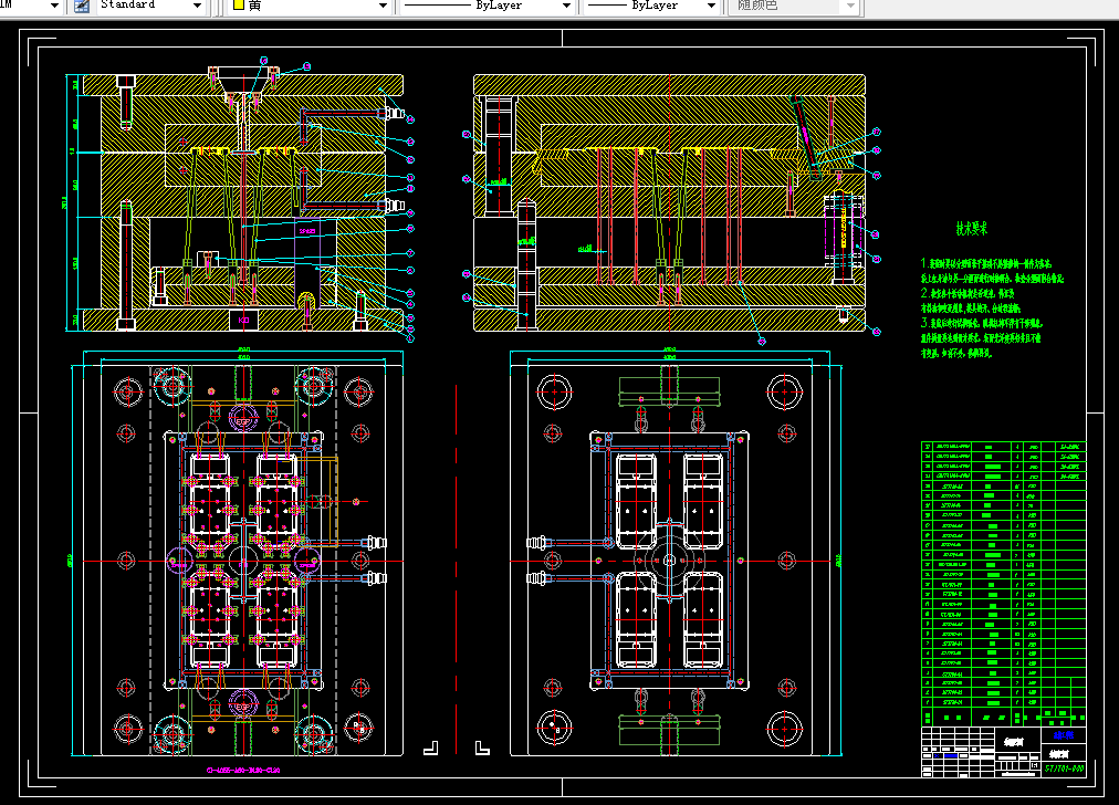 当画出塑件三维图了以后,确定塑件分型面为最大端面处,这样更还直观的可以看出开合模间隙。分型面确定好了以后有就开始型腔布局,如何更加经济和布局的时候需要考虑到之后型芯型腔的机械加工,经过分析布局为一模四腔的布局。再者就是设计流道的时候尽可能考虑到经济方面,流道尽可能不要太长,不要留有过多的废料。最关键在于成型零部件也就是型芯和型腔,设计的时候要额外仔细,数据把控需要很严谨,还有就是距离把控好,这直接关系到了塑件生产出来的质量以及外观。采用分布均匀的布局水道,充分冷却产品即可。然后顶杆布局需要受力均衡,顶出产品保证产品无顶白或者顶穿的情况,再设置弹簧,打螺丝,垃圾钉等等。设计完了以后仔细检查,再通过注塑机进行校核参数是否符合,计算相关尺寸。最后可以导出二维图也可以看见模具结构相互之间是否有干涉,或者遗漏相关的配合块等等,等确定无误以后再在CAD二维图里面进行标数,整理好相关图档、资料。